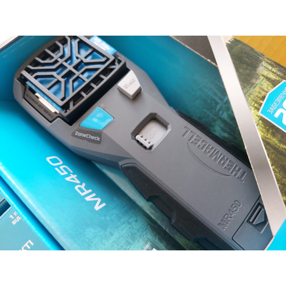 Пристрій від комарів Thermacell MR-450 має ергономічний дизайн і гумові накладки для зручного утримання в руці. Індикатор ZoneCheck дозволяє контролювати його роботу - спеціальний світлодіод загоряється під час нагрівання і гасне, коли температура падає нижче оптимального рівня.