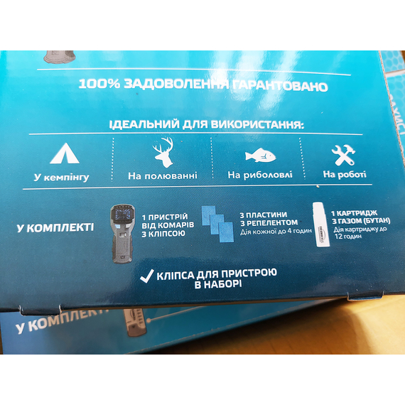 - в комплекті 1 картридж з газовою сумішшю і 3 пластини з репелентом на 12 годин безперервної роботи.